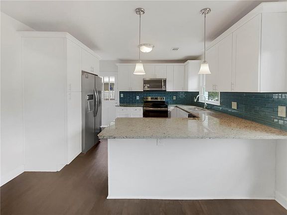 100-Day Home Warranty coverage available at closing. Modern style meets classic Decatur charm in this crisp, white-brick ranch with a carport in hot 30032. Sunlit, open-concept living showcases rich hardwood floors and fresh neutral paint. The designer kitchen pops with white shaker cabinetry, stone countertops, a large seating peninsula, pendant lighting, stainless appliances, and a striking teal glass subway-tile backsplash. The updated bath features marble-look tile, sleek fixtures, and clean contemporary lines. Spacious bedrooms, generous windows, and easy flow make everyday living a breeze. All of this minutes to East Lake, Kirkwood, Downtown Decatur, Avondale Estates, Memorial Drive hot spots, and easy I-20 access. Move-in ready and styled to impress.