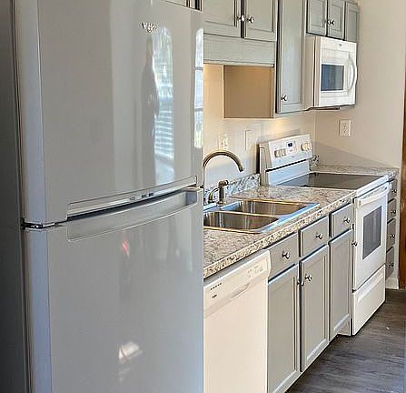 New luxury vinyl tile all throughout, new counter tops and appliances and gray cabinets