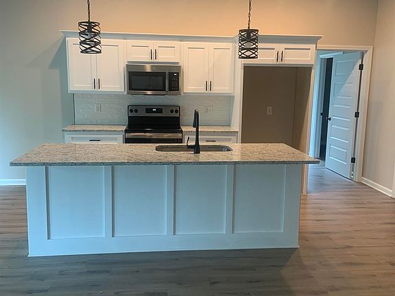 Beautiful New Construction, Split floor plan, Living/dining/Kitchen combo. App. 10 foot ceiling in LR. Kit with White Cabinets, Granite Counters, Black/stainless appl. Lg. island bar w/stainless sink, lg. panrty. Nice size laundry room. Primary bedroom has boxed ceiling, walk-in closet, Primary bath w/walk-in shower, soaker tub, separate vanities with granite counters. tile flooring in both baths, Luxury Plank vinyl flooring in remainder of house. Patio. Taxes are on the vacant lot.