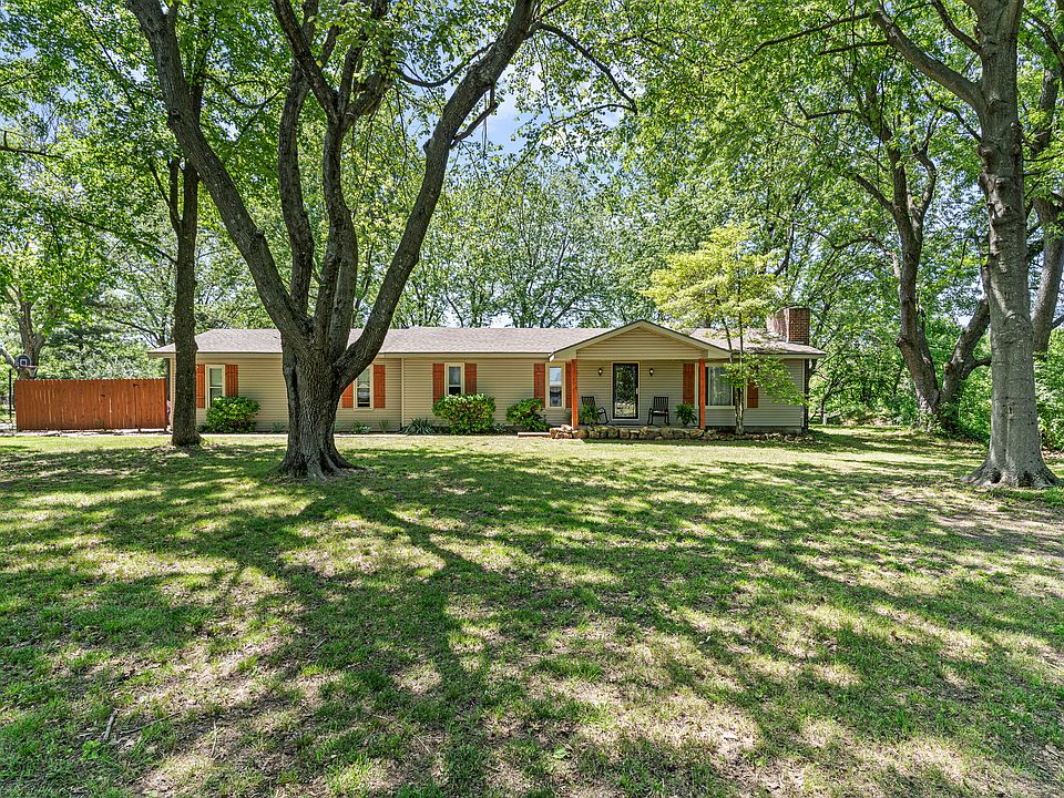 Surrounded by lovely shade trees, this secluded retreat includes a pool and hot tub and is an ideal private oasis. Recently renovated, this single-level home features an eat-in kitchen including new smooth-top electric stove, built-in microwave, dishwasher, refrigerator, stainless steel farm house sink, stainless steel prep island and a coffee bar. Additional updates include luxury vinyl flooring throughout. Four bedrooms plus three updated bathrooms, a large living room with wood burning Buck Stove add to this meticulously maintained home. The fourth bedroom (with a non-conforming closet) could be a second living area. Ample storage space along with a detached shop and lean-to are all situated on 5 expansive acres which would be great for gardening or livestock. The pool and hot tub area have been redesigned to include a new concrete patio with a covered porch. The pool area is fenced for safety but you can still enjoy the view of the property. This residence is move-in ready, featuring fresh paint and numerous updates throughout. The home has city water and a new septic system in 2022. This home has a Springfield address but is in the Willard school district. Embrace the tranquility and comfort of countryside living with all the modern conveniences this property has to offer.