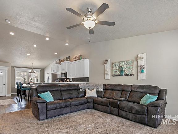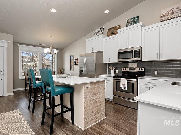 Are you looking for the ultimate Meridian location, then look no further. This incredible well cared for townhome will WOW you! Featuring an unbeatable location with close proximity to shopping, restaurants, parks, hospital and the freeway, this 3 bedroom and 2 bathroom single level has an open layout boasting 1345 sq ft. In the heart of the home, you will enjoy gorgeous kitchen with stainless steel appliances, quartz countertops, & a large island as well as a raised breakfast bar. Ready to take in the fresh air? Step outside to explore the fully enclosed backyard, boasting a cozy covered patio area ideal for relaxation and savoring the serene outdoor atmosphere. This slice of heaven is nestled in the Solterra community that includes a private community park, outfitted with a half-size basketball court, a playground, swings, walking paths, and benches for leisurely enjoyment. And best of all, the HOA maintains all yard mowing, sprinklers & irrigation, ensuring you year-round peace of mind!