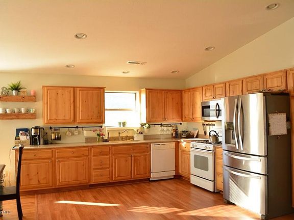 This is a wonderful, clean home in Diamond Valley. This home offers 3 bedrooms, 2 baths, a large, lovely living room. Bright Open Kitchen with solid surface counters, and laminate floors. Lots of windows to enjoy the mountain Views. Oversized 2 car garage and a great crawl space for extra storage. Front offers and extra concrete parking space too! Enjoy mountain views and beautiful Arizona Skies on the inviting back trex deck. DON'T MISS THIS ONE!