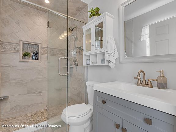 Move right into this 3 bedroom, 2 bathroom beautiful home located in the sought-after Barnegat Pines. This home immediately welcomes you in with its light and bright atmosphere. Impeccable laminate floors throughout the home besides carpeted bedrooms. Enjoy the beautiful large eat-in kitchen that features a 6 burner Viking Stove, with matching cabinet face Sub-Zero refrigerator, farm sink, oversized pantry, and plenty of cabinet space. Master bathroom has been newly renovated featuring gorgeous porcelain tile. The house has a large mud/laundry room leading to the garage. Covered raised deck leads to extended entertaining area with beautiful Pergola and paver steps to fenced in lawn. Two exterior storage sheds on property for optimal outside storage. Parking is a breeze with the oversized driveway and garage. Enjoy the convenient location of this home being close to parks and lakes. You do not want to miss out on this home. Schedule your appointment today!!!