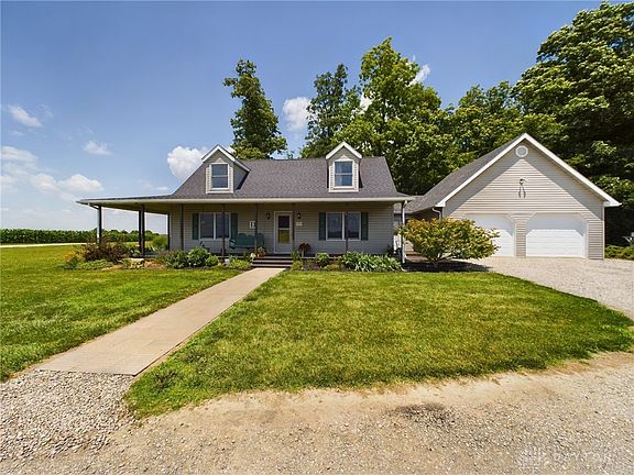 Peace and serenity at its finest! Welcome to this beautiful 4 bedroom 2 bath home privately situated on over 6 acres. Sit on your wrap around porch and watch endless sunsets and beautiful country views. If you like the outdoors this place is perfect for you with around 3 acres of woods for all types of recreational activities. Property is equipped with a very nice 36x48 pole barn with concrete floors, loft, and work shop. Enter inside and find complete turn key home. Home offers huge living room with towering vaulted ceilings and wood burning stove. Roof on the house was installed in 2023 and roof over the garage is only 11 years old. dont miss out on this rare find!