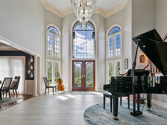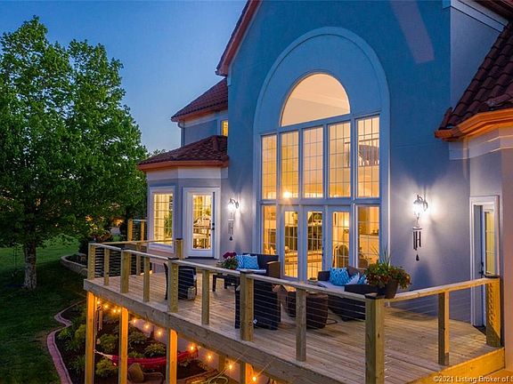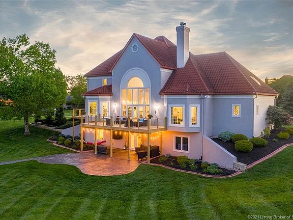 Approx-6000 finished sq footage- Overlooks a private lake & city skyline of downtown Louisville. All four bedrooms have an attached bathroom. Master has a walk-in shower, skylight, soaking tub, and his in her closets and a fireplace. Custom home office with amazing woodwork and built-ins. Freshly fin basement with custom bourbon bar, theater room, huge craft room. The Mother-in-law suite is in the basement w/ a view of the lake. Walkout basement with Covered porch leads to new stamped concrete patio and fire pit. New paint on the exterior and interior of the house. Freshly renovated main living space including flooring, stonework, lighting, appliances, 2 decks, and custom garage floor in the 3 car garage. New landscaping and outdoor lighting. Two fireplaces. One in the master bedroom and one in the living room. Upper-level coffee bar and wine bar. Main level laundry. Butlers kitchen. Quiet cul-de-sac with mature trees.