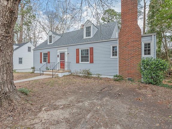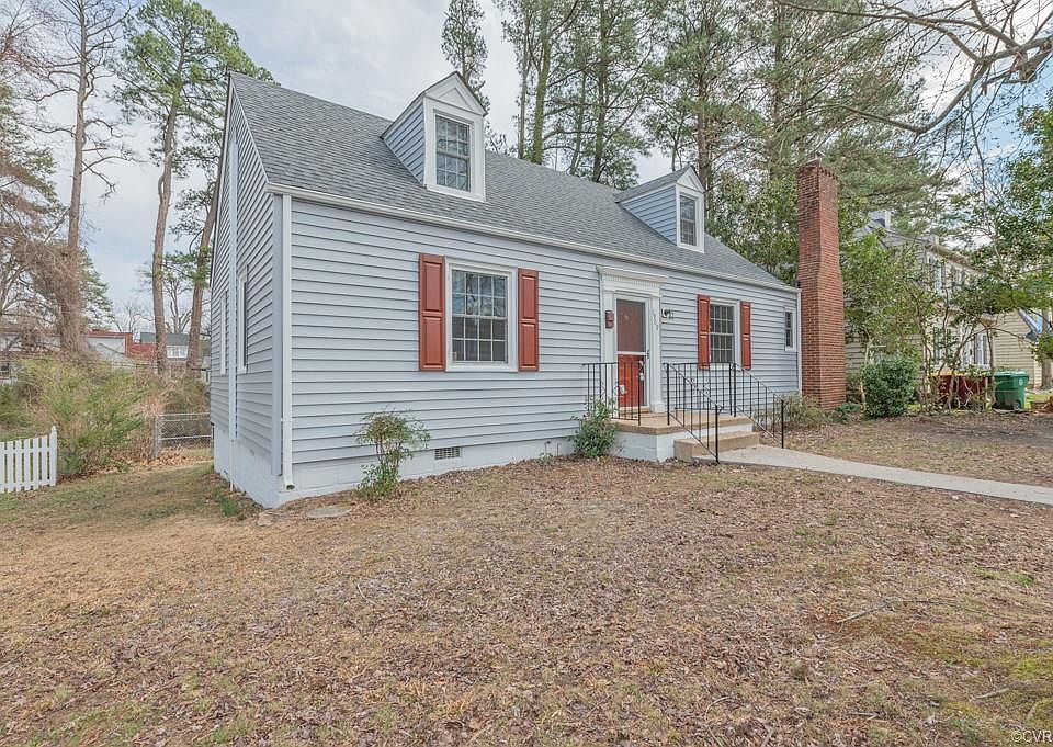 Where to start. Charming mid-century cape in the Walnut Hill area of Petersburg. This home has a new Trane heat pump for the first floor and two mini-splits on the second floor, new roof on house, freshly painted, new flooring in kitchen, baths and utility room. Beautiful refinished hardwood floors and new carpet in the FR. New light fixtures, remodeled baths, Granite counter tops. This floor plan is family flexible. You could easily make it two bedrooms up if needed. Vinyl sided, vinyl windows and off street parking. Covered porch, fenced rear yard and the shed has a new roof as well!