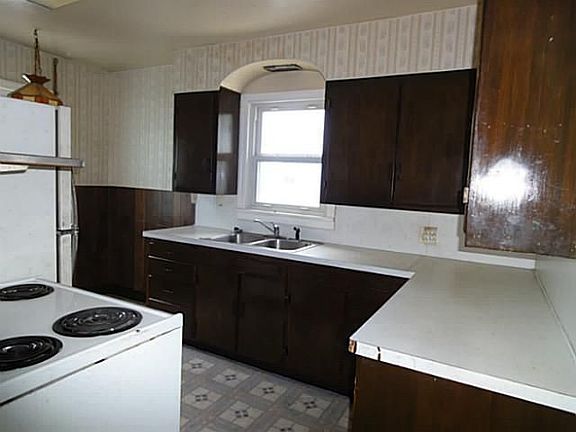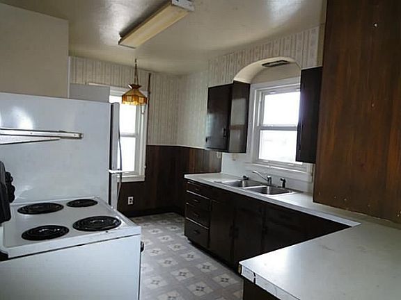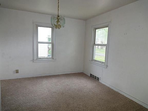 Affordable opportunity! New furnace, hot water tank, water lines in house, main floor carpet and gas line into house. Huge 2.5 car garage for storage or workshop. First floor master. Sunroom for relaxing in the summer. Welcome neighbors on your front porch. Full basement with glass block window provides potential future living space. Walk-in closet in upstairs bed. Move-in at closing! Sold as-is.