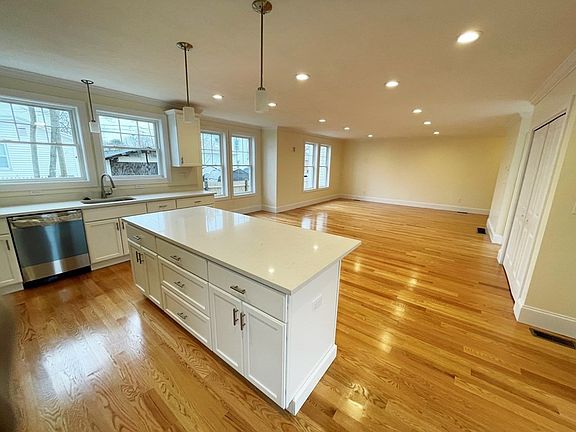 Brand new, Over the top 4 bedroom, 3.5 bath townhouse unit located on a beautiful lot on the Dedham line!! The 1st floor of this townhouse boasts an open floor plan with gourmet kitchen with large island, quartz counters and stainless steel appliances, a huge living room/dining area and large half bath. The second floor consists of a master bedroom suite with walk in closet and amazing master bath with walk in shower, 2 other generous size bedrooms, a common bath and laundry area. The top floor of the unit offers a second master suite with a bedroom, bath with walk in shower, sitting area and potential for expansion in an large unfinished room. There are hardwood floors throughout, C/A, 2 assigned parking spaces (#3&4), huge unfinished basement, common yard space and so much more. Please follow showing instructions. Covid form attached to listing must be completed prior to showing!
