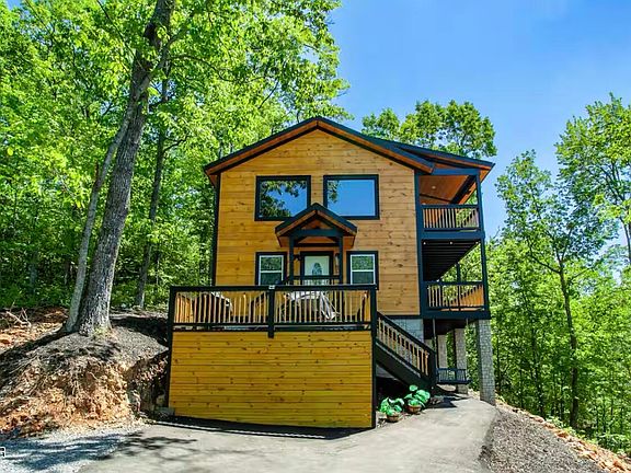 The main level deck features a hot tub conveniently located just off the living area. Designed for comfort and luxury, this cabin is ideal as an investment property or personal getaway.