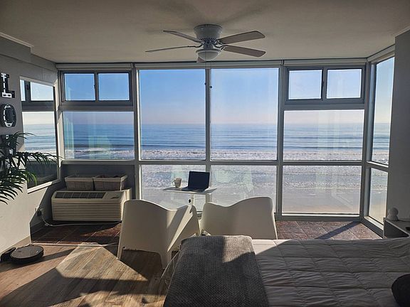 Experience the Ultimate in Coastal Living in Daytona Beach. Fully remodeled. Nestled in the heart of vibrant Daytona Beach, this charming studio condo offers an unmatched beachfront lifestyle. Boasting 543 square feet of thoughtfully designed living space, this property is your cozy retreat by the ocean. There's Breathtaking Ocean Views. The corner unit offers uninterrupted views of the Atlantic Ocean. Whether it's morning coffee or evening cocktails, this is your front-row seat to coastal serenity. Occasionally you may even be treated in witnessing a breathtaking launch from the Space Center. Prime Daytona Beach Location: Situated in one of the most sought-after areas along Daytona Beach, you're just steps from the iconic boardwalk, lively nightlife, and endless recreational activities. Live where others vacation. Enjoy direct beach access, a sparkling oceanfront pool, a tiki bar, and inviting outdoor seating. Every day feels like a getaway with these luxurious features. Short-Term Rental Potential: Currently operating as a long-term rental, this condo presents an excellent investment opportunity for savvy buyers, offering lucrative returns in this high-demand location. Sold fully furnished and ready for immediate use, the cleverly designed layout maximizes space, seamlessly integrating living, dining, and sleeping areas. Self-manage the property or utilize the building's rental program for hassle-free income. Don't miss this rare opportunity to own a piece of Daytona Beach paradise-whether as a profitable investment or your own beachfront haven! Gross Revenue is $30,000 per yer.