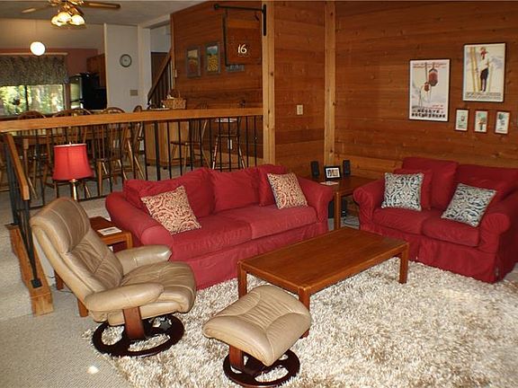 Overlooking the Hidden Valley Golf Course is this very spacious 4 bedroom end unit, ready for you to move right in just before ski season. One of the nicer 4 bedroom floor plans with 2 bedrooms on the lower level, and 2 on the upper. The Master Bedroom is oversized and includes a walk in closet area, private bathroom with additional sink area, and a balcony. Kitchen is open to the dining area and sunken family room with stone fireplace. Room to entertain or have multiple families comfortably, as everyone will want to visit you in the mountains. The large back deck is perfect for summertime. Take advantage of the green space all around it. Next to the playground, basketball court and South Ridge Swimming Pool make the location ideal. Have the shuttle pick you up during ski season to take you to the ski slopes. Hidden Valley Resort is the perfect place to call your mountain home.