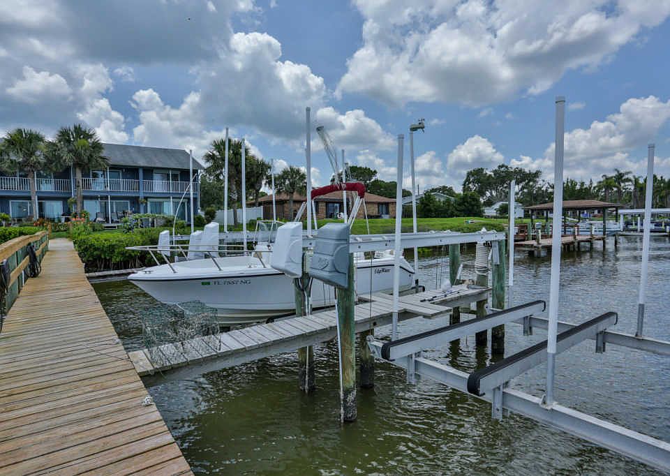 Enjoy your morning cup of coffee or end your evening taking in the beautiful view of the river from your personal balcony. This amazing Intracoastal waterway town-home is two bedroom, two and a half bath, with a large one car garage. This unit includes your own private deeded boat slip with a lift!!! Large hurricane rated sliders with breathtaking water views in both the living room and master bedroom. This exclusive community is made up of only 10 town homes, and the HOA dues are paid up until the end of this year! This is truly a water lovers dream at an affordable price. Schedule a private showing today!!