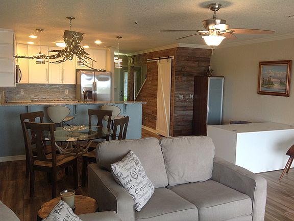 Beautiful furnished riverfront townhome 1292 sq.feet, 2 bedroom 2 1/2 bath, directly on the intercoastal with community swimming pool and two community docks. Freshly renovated and modernized with new kitchen and appliances, tile plank flooring, interior doors including front door and garage fire door. Many other updates including new staircase and lightning. Freshly painted with new baseboard, case and crown moldings. Oversize one car garage with attic access and front load washer and dryer. Great home for retirement, weekend getaway or permanent residence. Call with any questions or to make an appointment. Blaine
