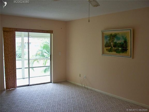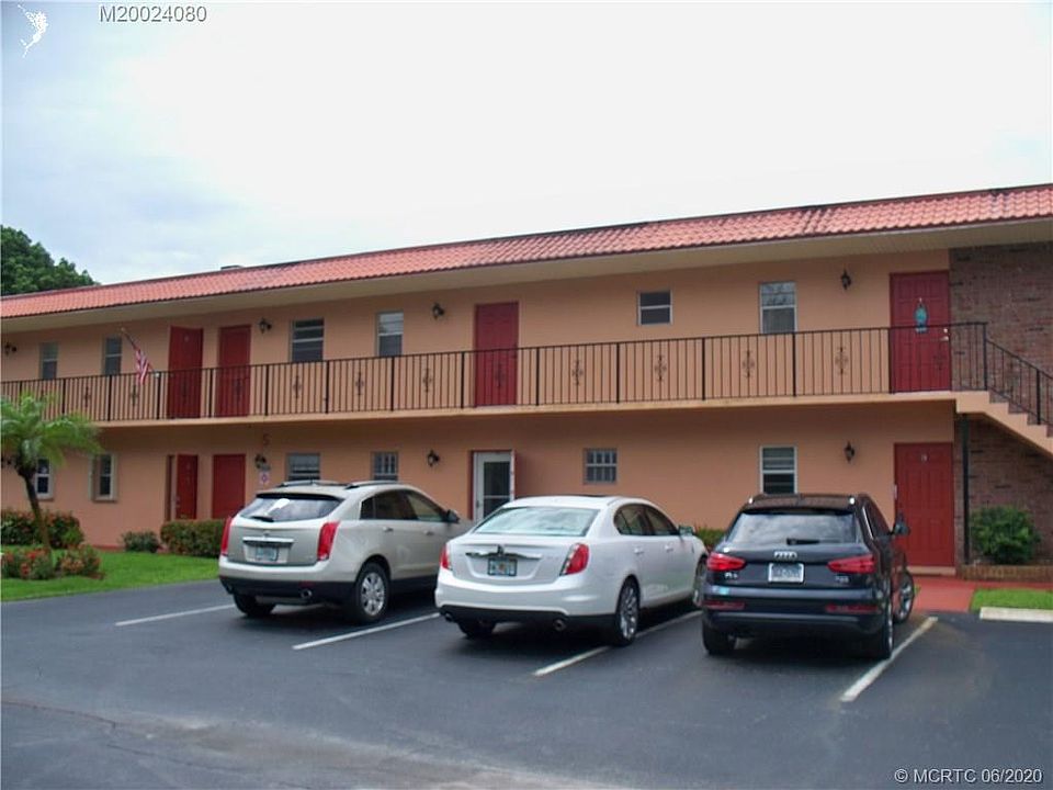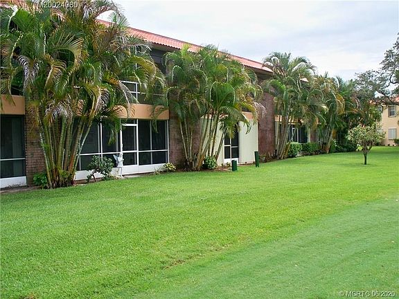 Value packed 2nd floor condo with large master bedroom approx 17x12 with walk-in closet and attached updated full bathroom which is adjoined to a half-bath. Large tiled screened porch with storm shutters and storage closet. Living is carpeted as well as the bedroom. The bathrooms are tiled. Master bath is updated with walk-in shower, vanity, toilet and walls accented with beadboard wainscote with chair rail plus linen closet It is also accenting the 1/2 bathroom walls. The kitchen is tiled and updated range, refrigerator, dishwasher and microwave. This unit is ready to move-into. The condo is located on the golf course looking out to the 6th hole. Great location with extra guest parking. Close to the clubhouse and amenities. UNLIMITED GOLF is included along with water/sewer/basic cable, WIFI at the main clubhouse, community pool, putting green, bocce, library, workshop, billiard - ping pong rm, 2nd clubhouse w/2 fishing piers on the St Lucie River. Lots to do or relax
