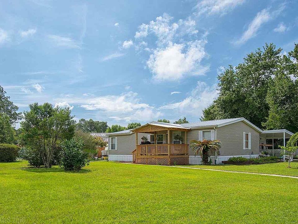 Come home to beautiful Lillian, AL! This home is situated on a double corner lot in Spanish Cove. The Large Florida room is the perfect area for enjoying the natural light and lovely outdoors in a climate controlled environment via mini split unit! Both of the bathrooms have been upgraded with new fixtures, tile, tiled showers, new toilets, and vanities. The home has been freshly painted. The kitchen has been upgraded with beautiful tile counters and freshly painted cabinets. ***$1,000 Carpet Concession Offered*** ***Additional $1,000 Concession Offered for 2nd bathroom shower.*** $2,000 total!!! There is plenty of storage space on the property and a 10 x 12 detached shed that conveys with the home. Relax and enjoy a rejuvenating bubbly dip in the hot tub located in the private & fenced back yard. The home has a sizeable parking pad with RV hookup. New 26 gauge polar white metal roof and gutters that was installed in 2014. HVAC has been consistently maintained and tuned up. New compressor installed 3 months ago. The plumbing under the home has been upgraded in 2016. New energy efficient front door just installed! The front of this home has storm windows. Owners pay $1425 a year for insurance including wind and hail. Spanish Cove amenities include nature train, year round swimming pool, playground, tennis court, club house, exercise facility, 24 Hour Security, and a monthly schedule of community events!