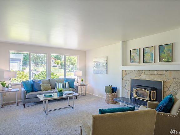 Fantastic Location and Floorplan - New Stainless-Steel appliances, freshly painted interior, new carpet, new laminate style hardwood floors and double pane windows. Inviting living room with gas fireplace that is open to the dining area. Upper level offers 3 bedroom and 1.5 bathrooms. Lower level enjoys a spacious family room with fireplace, bedroom, flex / office space and laundry room. Lower-level plumbed for bathroom. Spacious yard with room for RV parking, detached garage and deck for enjoying summer PNW nights!