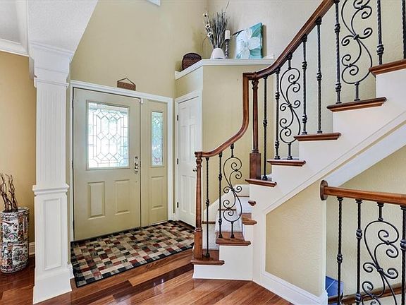 Stunning home with soaring ceilings only steps from the lake!! This classic beauty is situated in the coveted Shore Oak subdivision and features lake views from multiple rooms, gorgeous hardwood floors, wrought iron railings, THREE fireplaces, and more custom finishes and upgrades than can even be described. The sprawling main floor master, formal living and dining room, and incredible open concept custom kitchen and family room provide space for you to relax and entertain. There's more space to play in the fully finished walk out basement with wet bar (including an ice-maker!), great room, and additional flex rooms that can be used as offices or even storage. Laundry will be a delight (as much as it can!) in the spacious and well appointed laundry room. Outdoors enjoy a composite deck overlooking one of the most beautiful yards and views in town. Add to this Mt. Zion schools and what are rumored to be the very best neighbors to be found...all that's left to do is to make it your own!