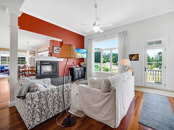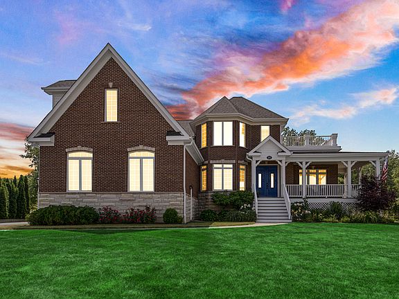 Lake living in unincorporated McHenry, a rarely-available single family home for sale in Clearwater Subdivision. Red brick Queen Anne style home with a wrap around front porch and "widow's walk" deck on second floor providing sweeping views of Clear Lake. First floor living, dining, kitchen and office provide more lake views, dramatic ceilings and Brazilian cherry hardwood floors. A luxury kitchen renovation in 2021 by Crystal Lake cabinet maker, Dulcedo Construction, includes bespoke cabinetry, La Cornue range, Subzero fridge, custom vent and traditional surfaces. Adjacent drinks center include beverage fridge and elegant serving area. Primary bedroom with private bath on the first floor. Two generous upstairs bedrooms connect with a sunny loft area and access to the deck. Cozy three-season room off the kitchen. Heated three car garage with possible huge bonus room on second floor. Full unfinished English basement. This house comes with the lake lifestyle: 6-seat hot tub, extensive gardens, community beach/boat launch, hiking trails and more! Across the street from Moraine Hill State Park.