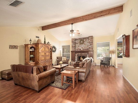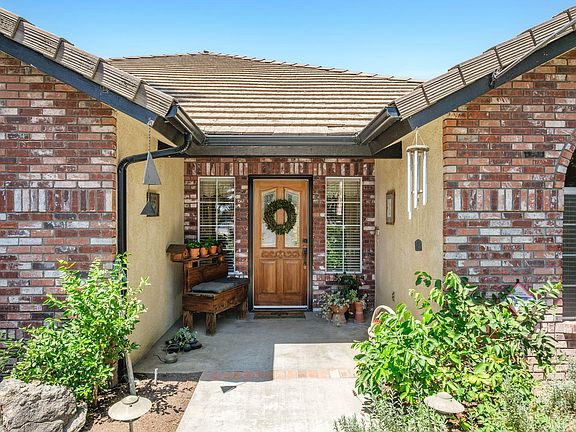 The list of features in this home include, a whole house fan, laundry room, his and her closets in the primary ensuite, and a separate fourth bedroom with lots of privacy is located down its own wing of the home and gives you options for a great home office or mother in laws space with the third bathroom located close by in the shared hallway. The home has wide hallways and doors and is one level making it easy for wheelchair access and no trip hazards. The three car garage and driveway has a convenient alley way location and is complimented with mature fruit trees.