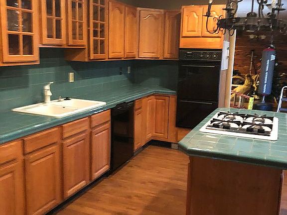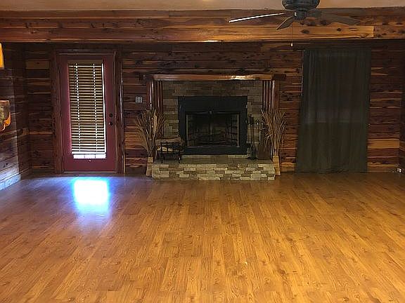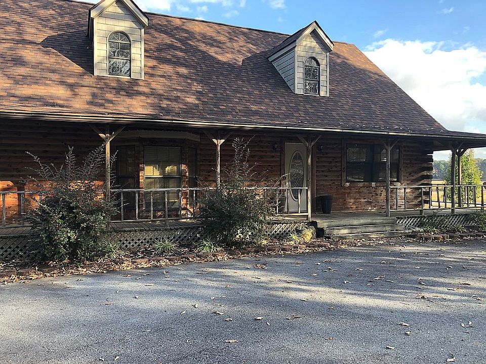 Log home with great space, close to elementary school. Master bedroom downstairs with walk-in closet, 2 bedrooms up stairs, large living room with fireplace & wood laminate flooring. Wrap-around porch, fenced backyard.