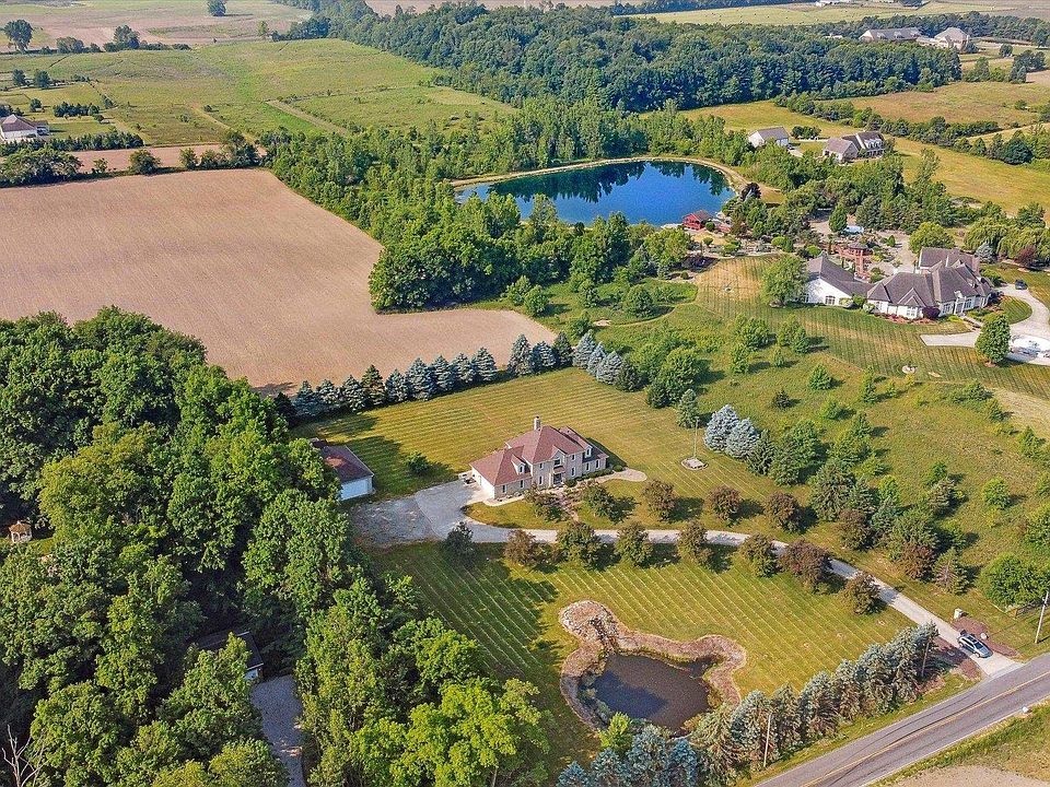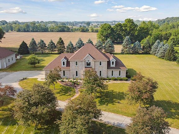 Country home on 10 acres with a pond for sale! This home has a first-floor bedroom suite with office/den, walk in closet, and amazing custom bathroom complete with tile walk in shower, soaker tub, heated floor, and double sink vanity. 2 full bathrooms and 3 bedrooms including a second-floor master suite upstairs! Large well thought out kitchen with granite countertops, custom cabinets, tile backsplash going all the way up to the ceiling, and new stainless steel appliances. New Engineered hardwood floors throughout much of the main level. Formal dining room and living room! Family room with gas fireplace. Main level laundry. There are many large windows which allow for spectacular views of the 10 acres throughout the home! Beautifully landscaped front and back yards with patio space and pergola! Finished basement with a second kitchen and large living space great for entertaining! Additional basement room that could be used for an office/craft room. Lots of storage space. New roof in 2019. Pole barn with oversized garage doors. There is also a pear tree and apple tree on the property. Conveniently located!