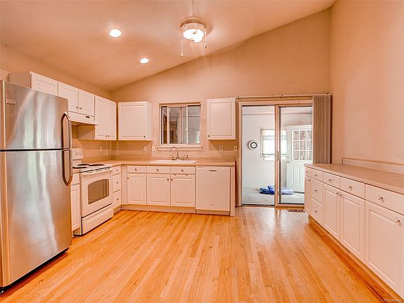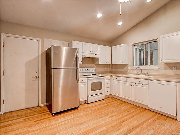 Adorable 2 bedroom 2 bathroom tri-level home located on a quiet, circular street. This home features hardwood floors, brand new carpet, vaulted ceilings, stainless refrigerator, lots of natural light, enclosed back patio area, front patio, and large storage shed. Great sized laundry area with washer and dryer included! The large shed in the backyard will be perfect for storage. Large two-car garage with freezer and enormous amount of storage potential. A/C, furnace, and roof were recently replaced. This home is located in a quiet, family-friendly neighborhood. Cherry Creek schools, too! Don't miss out on this perfect move-in ready home!!!