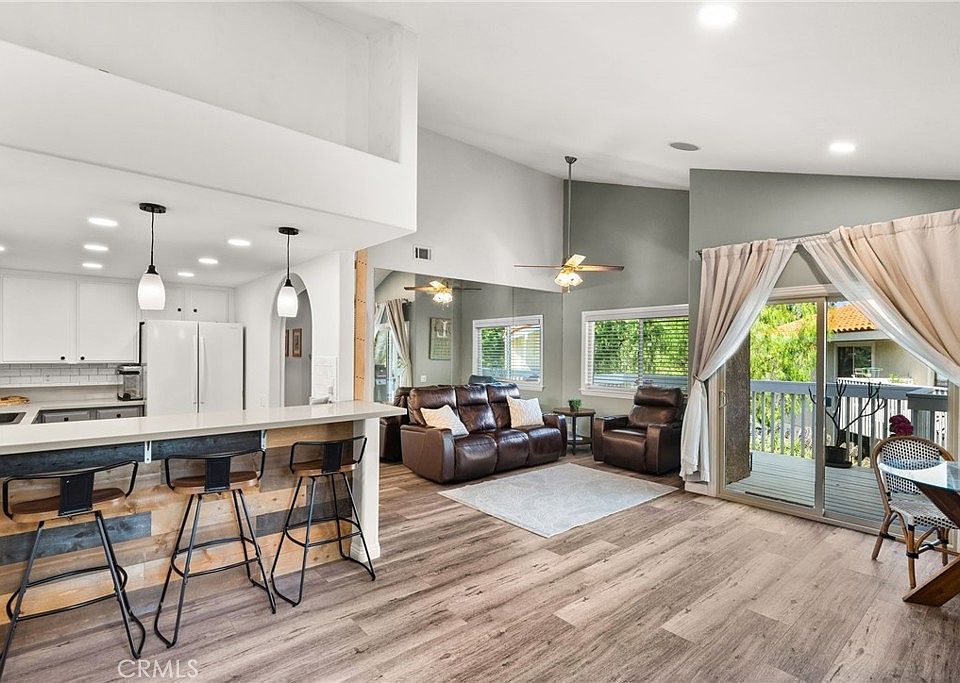 Welcome to your new oasis in the heart of Huntington Beach. This tastefully upgraded upstairs corner condo unit is a true gem that offers the perfect blend of comfort and style. The vaulted ceilings create a sense of spaciousness and airiness. The open concept design enhances the flow of natural light throughout. Recently remodeled kitchen featuring subway tile backsplash, quartz countertops, pendant lights, and stainless steel appliances. The