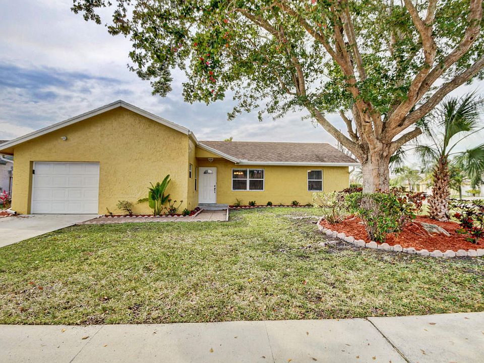 Completely renovated, gorgeous corner lot, pool home. This home has been updated from the kitchen to the bathrooms, new flooring throughout and move-in ready. A true 3 bedroom home with a split floor plan, large open living concept and indoor laundry. The kitchen has stainless steel appliances, a pantry, new lighting and granite countertops. The master bedroom has a large walk in closet and brand new, freshly tiled en-suite bathroom. The other two bedrooms share a full bathroom that has also been renovated and includes a tub. What an amazing backyard oasis with a free form pool and plenty of grassy area. There is also a spacious one car garage attached to the home. Great location close to shops and restaurants!