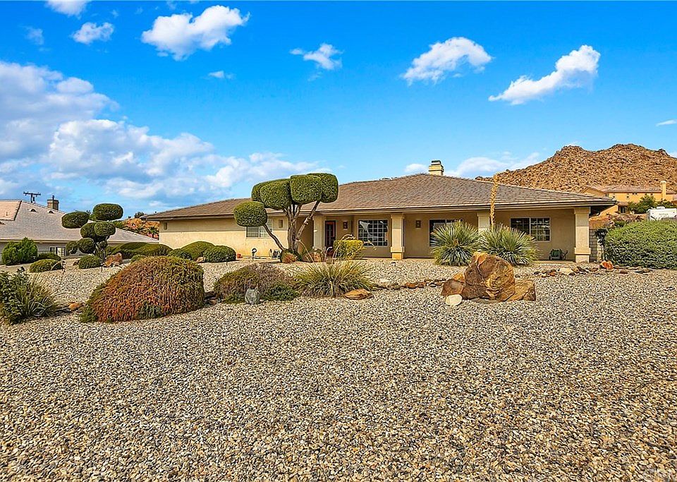 ***THIS ONE HAS IT ALL!***EXCLUSIVE DESERT KNOLLS AREA, Single Story**TOTALLY UPGRADED **AMAZING VIEW LOT **STUNNING HOME with ATTACHED 2.5 Car ( BOAT DEEP Garage) PLUS a DETACHED GARAGE!/ WORKSHOP !!!! You will be impressed with EVERYTHING here! You are welcomed by Wood-Look Tile throughout ( durable and easy to clean ) into your Formal Dining Area over looking your Sunken Living Area with Bright Bay Windows and currently set up as a Game Room / Bar. You'll then see your Beautiful Upgraded kitchen featuring Crisp White cabinets that pop against your Corian Counters and Stainless Steel Appliances.. So much counterspace and Storage with the additional Center Island as well. Circle around to your Second Living Area so cozy with a Fireplace and Cushy Carpet. This Split Floor Plan offers 3 Bedrooms and One Bath on one side and a Master Retreat with its own wing on the other! The Master Features a door to the backyard , Lots of natural light a LARGE CLOSET and a Beautiful Attached Bathroom with HUGE SHOWER. You'll Even enjoy this home's Laundry Room featuring Sink, Tons of Storage and Folding Area! You won't find another home with this Outdoor SET UP! COVERED PATIO, DESERT SCAPE, BLOCK WALL, and GATED Backyard with DETACHED GARAGE AND a WORKSHOP! Enjoy the GORGEOUS MOUNTAINS IN BACK AND CITY VIEWS as well!!! AMPLE PARKING SPACE for RV/TOYS and Multiple Vehicles!!!