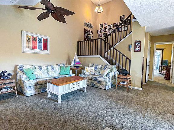 Take a look at this graceful 3 bedroom 2 bath home located in the popular Crescent Beach section of North Myrtle Beach. This home comes fully furnished and includes wood laminated, tile, & carpet flooring, vaulted ceilings, abundance of natural lighting, ceiling fans, cozy wood burning fireplace, formal dining area that includes chair railing, crown moulding, and showcases a sliding glass door that opens up to the relaxing patio. The equipped kitchen features, a breakfast bar, granite counter tops, smooth flat top range, dishwasher, side by side refrigerator with ice & water door dispenser, along with ample cabinet & counter space. The main level master bedroom offers a sliding glass door easy access to the patio, large walk-in closet, shared master bath that includes a vanity with a single sink, comfort station, laundry closet, and a classic step-in shower. The upstairs is completed with two additional bedrooms one with a wonderful balcony and both are connected with a full Jack & Jill bath. This home affords you easy access to the beach and golfing along with all of the other activities and happenings in North Myrtle Beach & Myrtle Beach including fun eateries, award winning off-Broadway shows, public fishing piers, and intriguing shopping adventures along the Grand Strand. Conveniently located to your everyday needs, including grocery stores, banks, post offices, medical centers, doctors’ offices, and pharmacies. Check out our state of the art 3-D Virtual Tour.