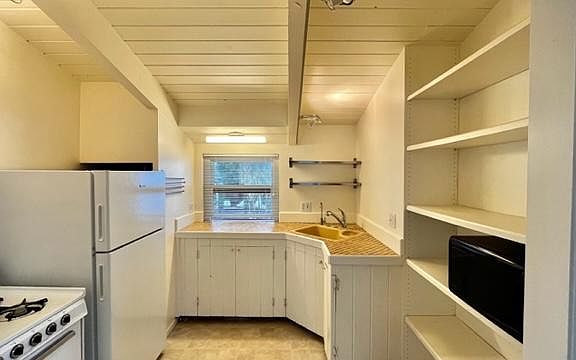 Prime downtown Sonoma location. Just one block west of Plaza and one parcel in from Vallejo State Park where they shoot off the July 4th fireworks. Beautiful light & bright upstairs 1 bedroom/1 bath unit in a 3 unit building. Large & airy spaces with open beam ceilings, lots of glass, sliders leading to a private deck, and the bedroom is generous in size. Stacked washer and dryer, gas stove, refrigerator/freezer, and microwave. No garage and parking is on the street. A rare find...a beautiful unit in a great location. One year lease.