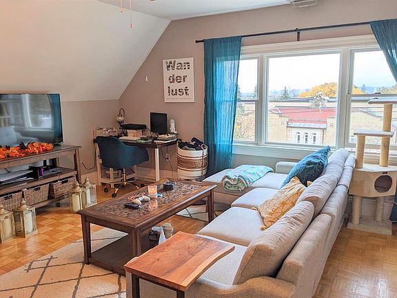 Lovely 2 bedroom 1 bathroom apartment (top floor) in a three-family home in the Spring Hill area of Somerville; easy access to Porter, Davis, and Union Squares. This unit features central air/ac, a living room, 2 large bedrooms, an updated eat-in kitchen with dishwasher, pantry, and IN UNIT LAUNDRY. Hardwood floors in the common areas, and carpet in the bedrooms. Awesome skyline views of downtown Boston from the living room. Plenty of street parking with Somerville permit. However, since the apartment is close to public transportation, most will use the red line (@ Porter Sq.) or the green line (@ Union Sq.) to get around town. Tons of restaurants/shopping nearby. Cats are negotiable. (Reference #126575) Available December 1st. In unit laundry. Street parking with permit. Broker fee = 1 month.