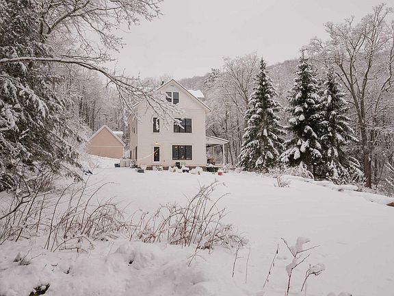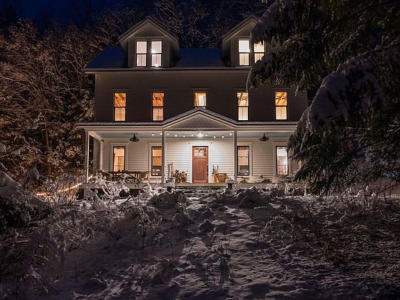 Welcome to 191-195 Woodchuck Hollow Road, Pine Hill! This stunning, move-in ready property, completely renovated within the past five years, offers a unique and tranquil retreat nestled amidst the beautiful natural surroundings of the Catskill Mountains. Situated on a dead-end road, a stone’s throw from the village center and a five-minute drive to Belleayre ski center and beach this luxury, two-residence property, with a modern rustic aesthetic, offers a perfect blend of period charm and modern amenities. Set on two acres, the spacious front porch provides a perfect spot to relax, or enjoy an al fresco meal while taking in the scenic views. Upon entering the main residence, you'll be greeted by an inviting open floor plan flooded with an abundance of natural light through the new, energy efficient, oversized windows. The spacious, triple-aspect living room, with its feature Stuv wood-burning stove, lime wash walls and 9ft tall exposed timber ceilings, creates a dramatic and expansive atmosphere with views of the mountains and surrounding countryside. Reclaimed red oak floors on the main floor add warmth and timeless elegance to the space. The bespoke gourmet kitchen, with ample storage space, is a culinary enthusiast's dream, featuring Wolf and Thermador appliances. It seamlessly connects with the dining room, making it ideal for hosting gatherings and entertaining guests. This reimagined farmhouse offers three well-appointed bedrooms and three bathrooms, including a spacious primary suite with an ensuite bathroom, large walk-in closet/dressing room. The two additional bedrooms are generously sized and can accommodate family and guests comfortably. The bathrooms feature modern fixtures and premium finishes, enhancing the overall luxury feel of the property. On the third floor you will find a further 648 sq ft of flexible living space with breathtaking views, currently arranged as a den, games room and yoga/meditation studio, but with the potential to create a home office, art or music studio. The dry, full-size basement, as well as housing the mechanicals, provides ample room for storage. For those seeking additional living space or potential rental income, the property also includes a carriage house, featuring its own private entrance, living area, kitchen, bedroom and bathroom. A three-car garage completes this special property. Conveniently located a half mile from Pine Hill village center, with its vibrant village community center, this property provides easy access to a plethora of year-round recreational and cultural activities. Enjoy hiking, biking trails, skiing, swimming, bowling and fishing, all just a short distance away. Additionally, a variety of local shops, restaurants, bars and amenities are within close proximity, ensuring all your needs are met. Don't miss the opportunity to own this exceptional property and experience the perfect blend of luxury, nature and tranquility. Schedule your private tour today!
