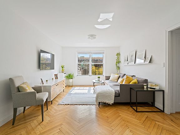 All showings by appointment only. Contact listing agent. Fully renovated, move-in condition 3 bed/2 bath in Prime Bay Ridge! This expansive light-filled apartment is located on the fifth floor of an elevator building, offering treetop and partial water views with Western, Southern, and Northern exposures. This corner unit features a spacious open floor plan, new bay windows, original hardwood and herringbone floors, and abundant sunlight and open space. The living room is sun-drenched with brand new over-sized windows beaming with natural light and flows seamlessly into the open dining room which is perfect for entertaining. The fully renovated kitchen features new quartz counter-tops, stainless steel appliances (including a dishwasher), and a kitchen island complete with abundant storage space and drawers. This unit includes two king-sized bedrooms and a spacious third bedroom that doubles as a recreation room/home office. The apartment also has two renovated windowed full bathrooms with tubs. Additional features include a decorative fireplace, new windows throughout, plentiful closets, including a walk-in 9' x 4' storage room near the foyer, and concrete subfloors to decrease noise. Building amenities include laundry facilities, additional storage, parking (with a short wait list), live in super, and a landscaped courtyard. This pet-friendly building also allows subletting. It's conveniently located near 3rd Avenue's shops & restaurants and also just minutes from the R subway, X27/X37 express buses and NYC commuter ferry to Manhattan and Downtown Brooklyn. Please note all utilities (even electricity) are included in your maintenance, which is almost 50% tax deductible. In addition, the owners have pre-paid the current assessment ($498/mo) until Nov 2021. Call now to schedule your showing!