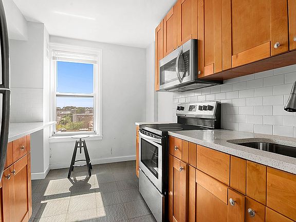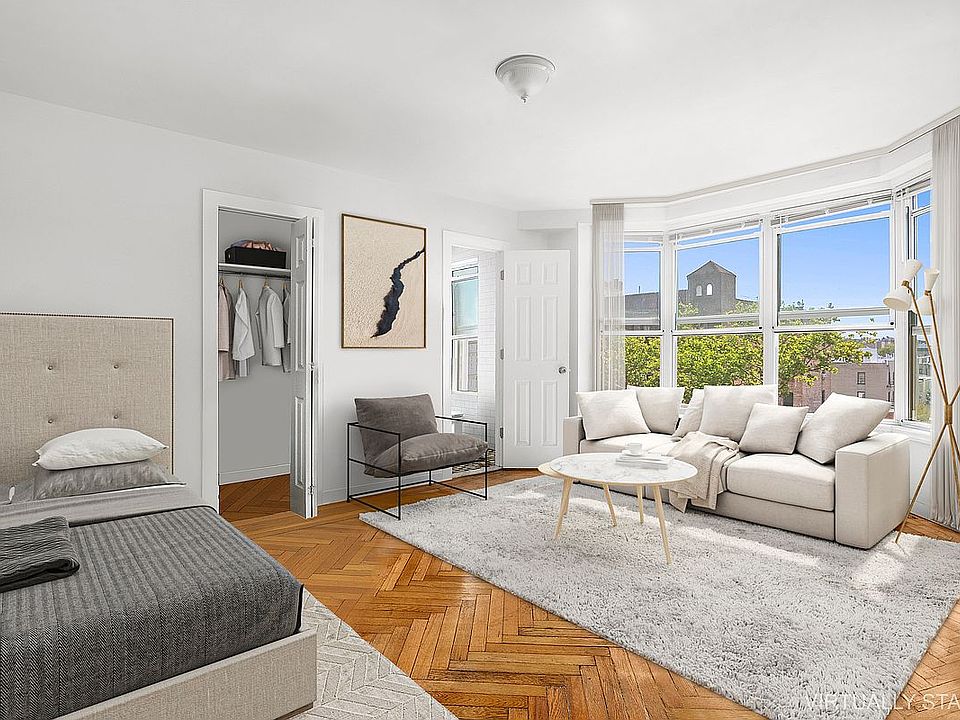 Call this bright, spacious studio home! All utilities are included in your maintenance! This incredible, two-room studio on the 7th floor features beautiful herringbone floors, a large Southeast-facing bay window that floods the home with light and provides fantastic views of Bay Ridge. The renovated eat-in-kitchen features modern shaker cabinets, a white subway tile backsplash, ample counter space and stainless-steel appliances. The windowed bathroom includes a shower, bath tub and a white vanity cabinet. Storage is abundant with a walk-in-closet in the living area in addition to an entry closet and eat-in-kitchen offering generous storage space. The building is pet-friendly and features an elevator, live-in super, parking and storage units of varying sizes available for rent. The building boasts brand-new windows and bricks in the entire complex, after having undergone 10 years of improvements under Local Law 11. One of 6 buildings in the Flagg Court complex. This unit allows direct elevator access to one of two laundry facilities. Located a block away from PS 102. The apartment is conveniently located close to the R train or the NYC Ferry. A short distance from Owl's Head Park and Shore Road Park. The neighborhood also features an incredible variety of restaurants, bars and grocery stores close by.