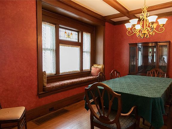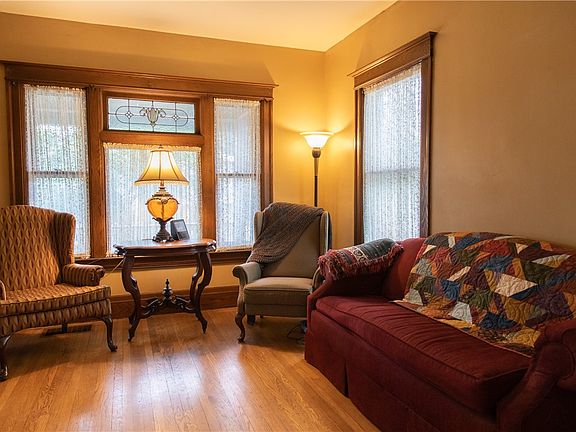 Classic turn of the century home with natural chestnut trim and fabulous stained glass. Tons of character - relax on the super front porch w/new lattice! Fabulous finished attic, fully insulated and with remote blinds. Pine floors in upstairs bedrooms, hardwoods downstairs. 1 yr old Hi E furnace, 40 gal water heater. Whole house is rewired w/150 amp breaker box. Work bench included. First floor laundry, maple flooring in kitchen, coffered ceiling in dining room. New concrete driveway and retaining wall. Roof 2009, glass block windows. Allow 24 hours for a response.