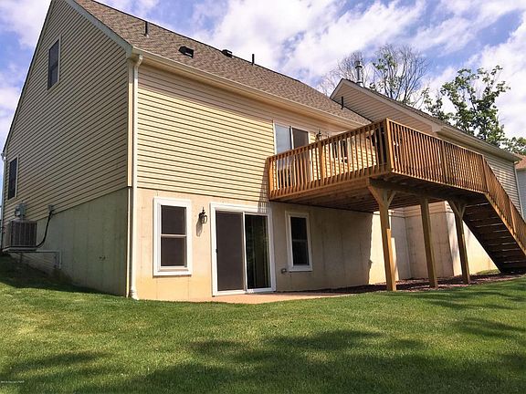 A very uniquely crafted Cape Cod style home, constructed with the finest upgrades. Upon your visit one will notice the plush lawn boasting an in-ground sprinkler system, and stunning landscaping. Entering the front, a ceramic tile foyer flows thru the living room via brilliant hardwood floors. The stone fireplace awaits a toasty fire on a cold day. Your kitchen sparkles from tile floor to granite counter tops, enhanced by premium GE stainless appliances, encased and complimented by rich cabinetry and detailed by ceramic backsplash. A Master bedroom and bath suite with full walk in closet are all on the first floor! And YES the flat screen TV's in all rooms are yours. A powder room and spacious pantry closet top off the first level. The upper level provides a full bath with tile,