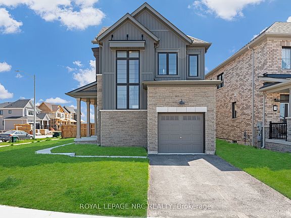 Stunning Executive Two-Storey Home on Premium Corner Lot in Empire Canals!Welcome to this beautifully crafted, nearly-new executive home located in the sought-after Empire Canals community in Dain City. Perfectly situated just a 5-minute walk to the Welland Canal and The Cove Park, this property offers the ideal blend of modern living and natural surroundings.Set on a premium corner lot, this home is just under 2 years old and showcases high-end finishes throughout including rich hardwood floors, oak staircase, and oversized windows that flood the space with natural light.The open-concept main floor is ideal for both family life and entertaining, featuring a spacious living and dining area, plus a stylish kitchen with a large island and plenty of cabinetry.Upstairs, youll find a generous primary suite complete with a walk-in closet and private ensuite bath. The second floor also offers two additional spacious bedrooms, a convenient second-floor laundry, and a modern 4-piece main bath.The unfinished basement includes a bathroom rough-in and is ready for your personal touch whether you envision a rec room, gym, or in-law suite.This home is move-in ready and located close to walking trails, schools, shopping, hospitals, and just a short drive to Highway 406, making commuting a breeze.