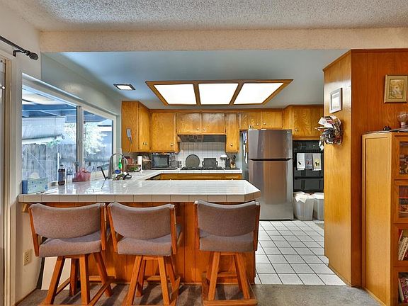 This home offers dual living spaces. One with a cozy fireplace, and the other open to the kitchen with direct access to the yard. Primary bedroom offers its own ensuite. Remaining bedrooms share a full size bathroom. Two access points to the garage where the laundry is located. The yard features a covered patio, spa, and mature trees including pomegranates. Flat expansive backyard with a lot of potential. Close to schools and parks. You are going to want to see this one before it's gone!