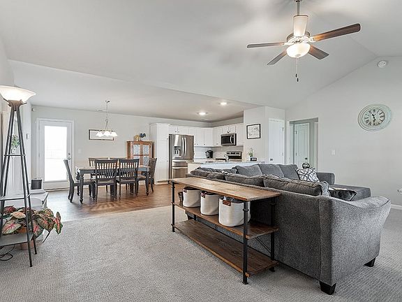 Check out this like-new house that was built in 2022! The home features 3 spacious bedrooms, 2 full baths, a cozy fireplace, huge fenced-in yard, 2-car garage, patio for grilling, and so much more! Open concept floor plan with the living room flowing into the dining space & kitchen. The kitchen also features modern touches with granite countertops & stainless steel appliances. Spacious owners' suite with a large walk-in closet, tray ceilings and garden tub. Enjoy watching sunsets in the backyard and watching the sunrise from the front porch!