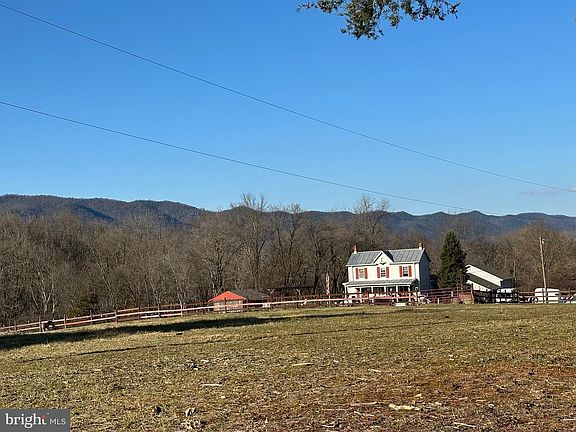 Wonderful opportunity to own a 3-4 bedroom/ 2 bath Farm House on 8 acres of Land with aerial views of mountains. Handicapped accessible with a bedroom on the main level and a full handicap bathroom! Great deck off the side of the kitchen, wheel chair accessible- also front door! Large kitchen with a gas & electric stove! 2 Car Garage w/ Huge Mans Cave or Rec Room w/ a Huge Loft Apartment- Great for Entertaining! Horse barn has 5 horse stalls. The 5 stall barn is enclosed with a large corral. There are 2 fenced in fields with a run in shed for each field. Perfect for your equines; horses donkeys. or zebras. The property is accessed by a gravel road leading to the Shenandoah River, a half a mile away. There is a 40' X 80' square garden located near the front of the house. Fresh spring water is delivered and contained in a large underground sistern -There is an old well between the house and garage that is not in use. Current owner bought the property in 2005 and does not have any information on the well and no records from the health department. Sold "As is"