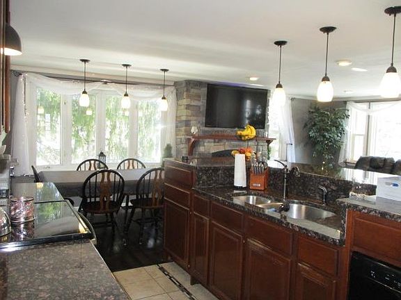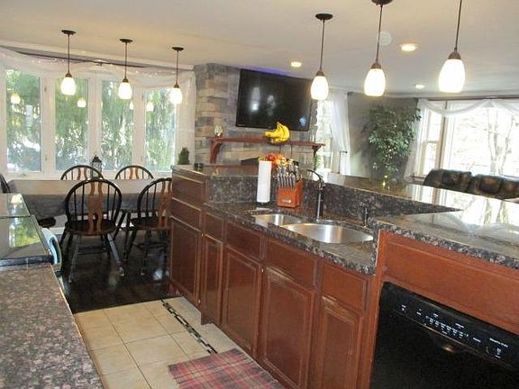 RENOVATED and ready for new owners! This 4 bedroom, 2 full bath home is on a poured full foundation with attached 1 car garage that sits off the road. The following is the list of NEW items: 200 Amp ELECTRIC, ROOF, WINDOWS, KITCHEN with Island, APPLIANCES, BATHROOMS and FLOORING through out! Open concept with eat in kitchen -newer appliances and living room/dining room combo featuring a Stone propane fireplace. 3 bedrooms and 2 baths on main floor and large master in the walk out basement with plenty of room to add a master bath if needed. Newly tiled entrance from the garage which leads to the laundry room and the master bedroom. Looking for a fabulous backyard to entertain? The new deck leads out to the HOT TUB and the POOL with slide along with an outdoor fireplace where you will want to spend all your cool nights and summer days! And a play house for the kids in all of us! Conveniently located off the Worcester I88 Exit. Close to gas station, convenient stores, library, movie theater, restaurants, school, post office and bank! Check out the virtual tour!