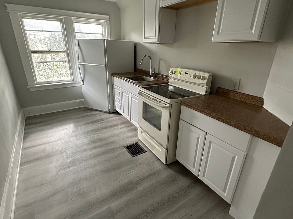 Our brand new huge renovated two bedroom boasts gorgeous updates from top to bottom! Newly painted, gorgeous new vinyl floors, updated gorgeous modern tile bathroom with standup shower, and brand new kitchen countertops, cabinets and appliances! All for an affordable price! Washer and dryer hookups in the unit!