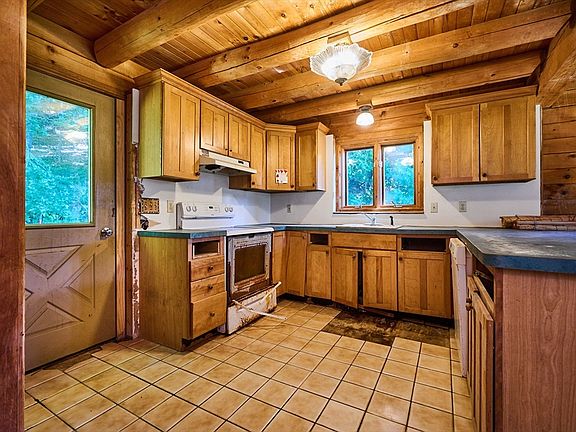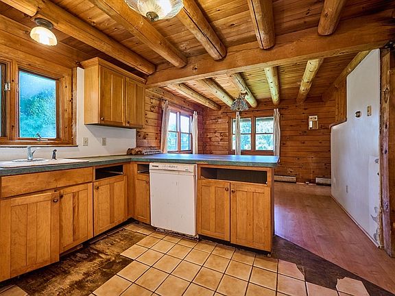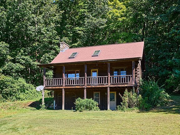This Log Home is set back a comfortable distance from the road on a 3.5 acre lot, creating a peaceful, private setting! The main living area has a spacious living room with fireplace; access to an elevated front porch; 2 skylights and open to a loft above. There is a kitchen with a large dining area and a full bath to finish the first floor. The upper level has a loft area, bedroom and another full bath. The walk-out basement is completely above-grade on one side, offering an ideal space for more living area. The home needs some updating, but will be well worth the investment.