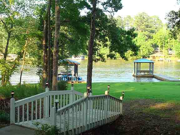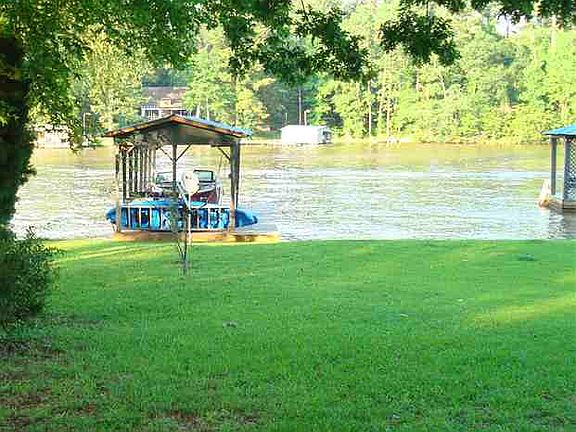 Fabulous point lot with approx 6 feet at swim dock and separate Boat shelter with lift. 3 BR, 2BA, Open kitchen, den w/fireplace. Hardwood floors. 2nd Sunroom used for dining on lakeside and great deck for outdoor grilling and entertaining. 2 car detached carport, workshop, concrete storage building and additional storage house for water toys.