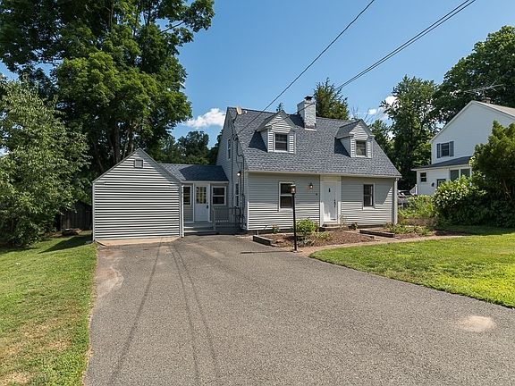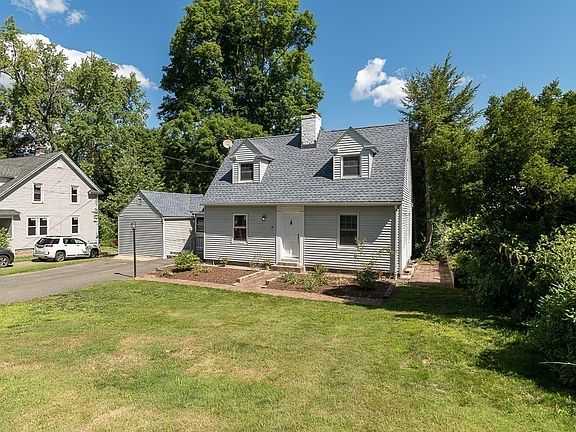 Simply adorable and charming cape style house with a newer kitchen including stainless steel appliances (gas range), newer white cabinetry, granite counters a bay window and an eating area. This efficient kitchen open to the dining room which has the slider to outside. The house has a newly painted interior ( excluding the basement) replacement windows,4 bedrooms(garage has been converted into a bedroom) and a great open floor plan with flexible spaces. There is no real main (master ) bedroom but the first floor bedroom (2nd) is next to the bath /laundry. This lovely house is conveniently located to restaurants shops and is close to the Connecticut border to access closest International Airport(Bradley -Hartford). The deck and window trims that need draping and painting will be completed soon.
