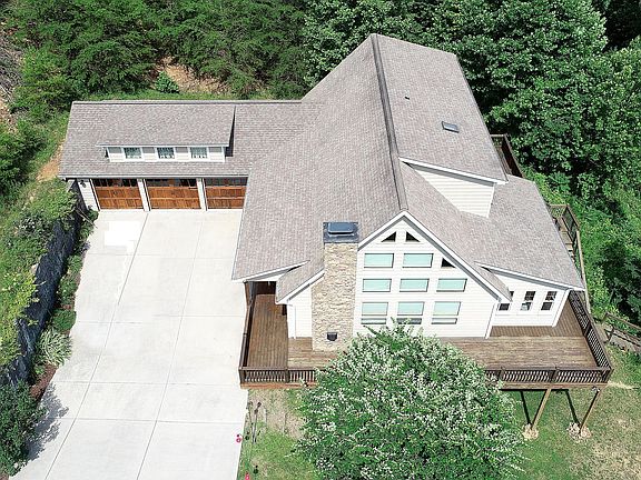 Master BR suite, laundry, half bath and kitchen on main level. Upstairs is a large, airy loft with skylight, 2 bedrooms and full bath with tub. The lower level offers a completely self-contained apartment (900 sq. ft.) with full kitchen, large open area (LR/DR), bedroom and full bath along with separate heating/cooling system and hot water heater. Lot is fairly heavily wooded for complete privacy but can easily be opened up to enhance water views. A wrap-around, cedar deck gives you access to the stairs and path to the lake or you could cruise down to the water on your ATV. Double-slip, covered dock with boatlift offers a great spot to swim and fish from made special because of its location in a year-round, deep water, no-wake zone. At the dock you'll see the magnificent view of the main channel with mountains in the distance. Offered completely furnished. This would make a great rental property for investors and could potentially gross $25,000 - $40,000 per year in vacation rental income. NOTE: Home has separate heat pumps for each floor (3) and two have had new compressors installed. A back-up emergency, propane generator (17KW) will power all necessities on the main floor during stormy weather. Fiber optic high-speed internet service recently installed The 3-car garage has attic storage as well as oversized door for boat storage. There is also a premium water filtration system. The double-slip boat dock with boat lift has a TVA Permit. CURRENT R.E. TAX RECORDS INCLUDE ADJACENT VACANT LOT TAXES AND WILL BE ADJUSTED ACCORDINGLY. Stove, microwave, dishwasher and refrigerator in lower level apartment remain as well. Drive to small-town shopping in Tazewell is 7 miles from community entrance.