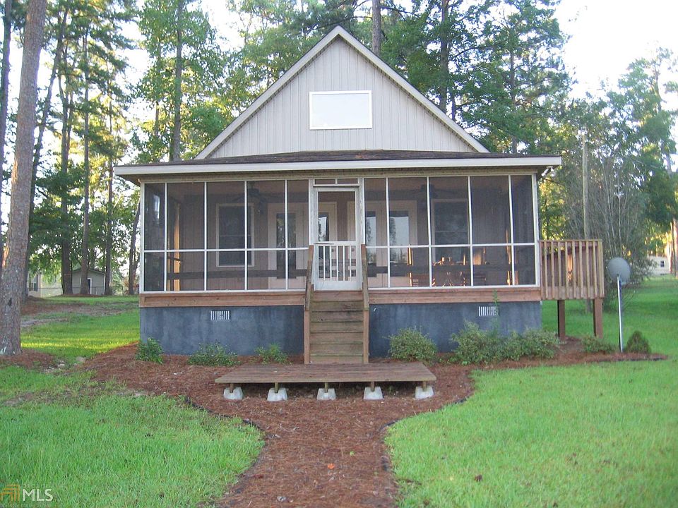 Almost new a-frame with an excellent waterfront view, this is a 3-bed 2-bath hardly used home by the owner. It is in excellent condition and has a built in fireplace that uses gas logs. They have a new heat pump, dock, boat slip, and a boat ramp. It is very close to the main part of the lake with big water views and has water depth at the dock of 5 feet. Come and sit on the screen porch and enjoy what lake life! In addition to all of this there is a attached storage room-----can be used for storage or a work shop. Property is located less than 10 minutes off 441 between Milledgeville & Eatonton. Easy access to town. Ready to move into. One (1) yr. Home Warranty will be provided to the LUCKY NEW HOMEOWNER
