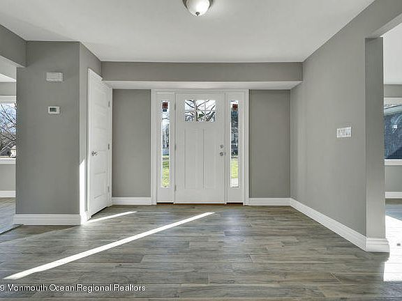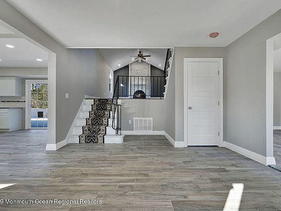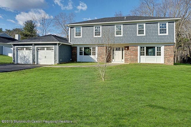 East Freehold's Colonial Acres 4 bedroom 2.5 bath colonial with basement and 2 car garage. Everything in this home has been completely renovated. Kitchen, baths, new flooring, lighting and paint. Big tickets items also replaced including new siding, roof, windows, paved driveway, and garage doors. First floor has open floor plan with formal living room, dining room, eat in kitchen, laundry room, half bath, and office. Brand new kitchen with granite countertops, subway tile backsplash, cobalt appliances, recessed lighting and center island. Family room on second level has wood burning fireplace and recessed lights. Master bedroom with walk in closet and fill master bath with new vanity and tiling. Fenced inground pool and patio are perfect for summer enjoyment. Close to NYC transportation.