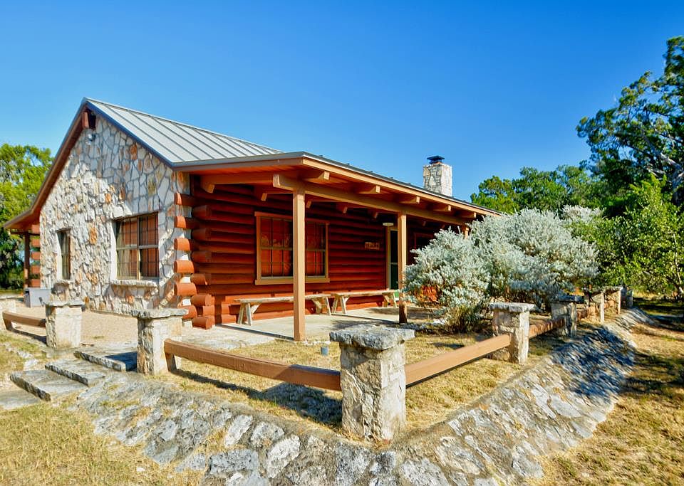 Beautiful 10 acres with breathtaking Hill Country views featuring a charming 987 sq. ft. log-and-stone cabin. This inviting home offers high ceilings, an open floor plan, a cozy wood-burning fireplace, 2 bedrooms, and 1 bath. Enjoy outdoor living on the covered porch, the expansive flagstone patio, and the elevated viewing deck overlooking the Texas Hill Country. Property includes a 2-car detached garage with a full bath and storage room, plus private well, septic, and perimeter fencing with gated entry. Peaceful, private, and ideally located just under 8 miles from the heart of Kerrville. A true Hill Country gem.